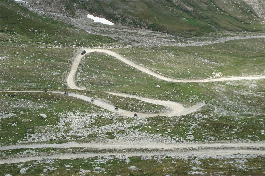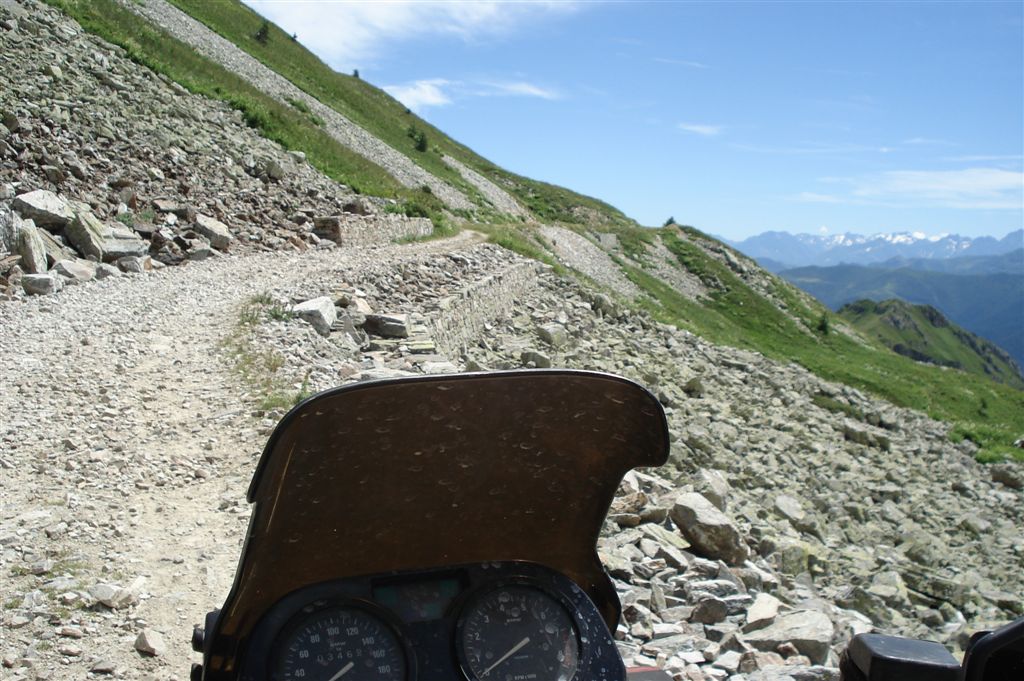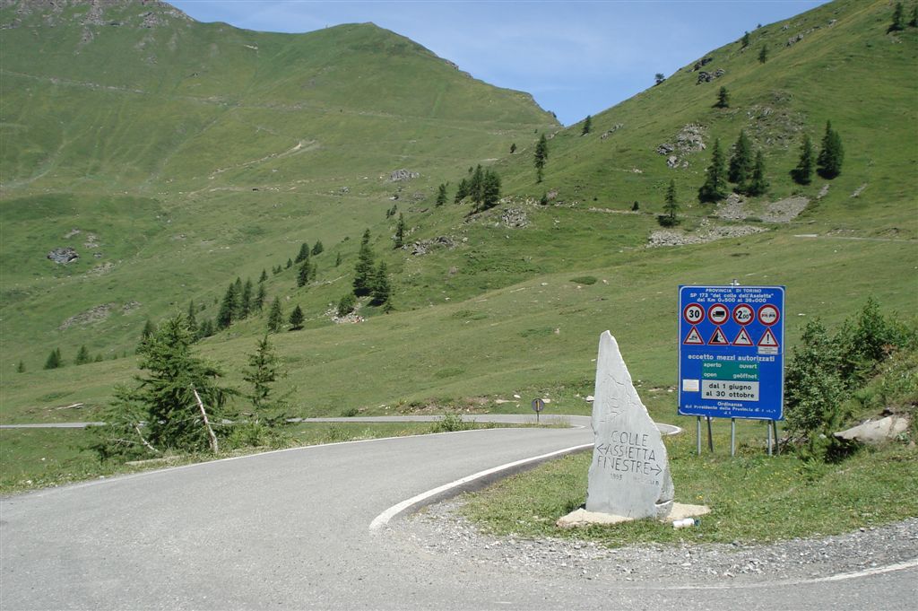 Westlicher Direkteinstieg in Sestriere gesperrt aufgrund einer Sportveranstaltung an diesem Tag. Östlicher Aufstieg von Finestrelle aus war offen, Colle delle Finestre ebenfalls. Assietta jedoch auch von hier aus gleichem Grund gesperrt. Erkundung des gut erhaltenen Forts auf dem Colle delle Finestre und Abstieg über selbigen ins Susa-Tal. Da Sonntag war, fahren die Italiener gern ins Grüne, picknicken und entspannen. Entsprechend viel Begängnis, was am folgenden Montag schlagartig nachließ.