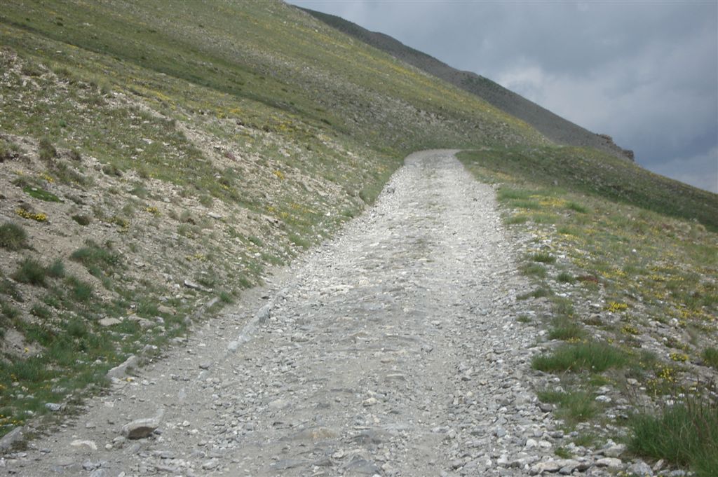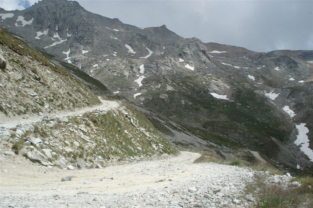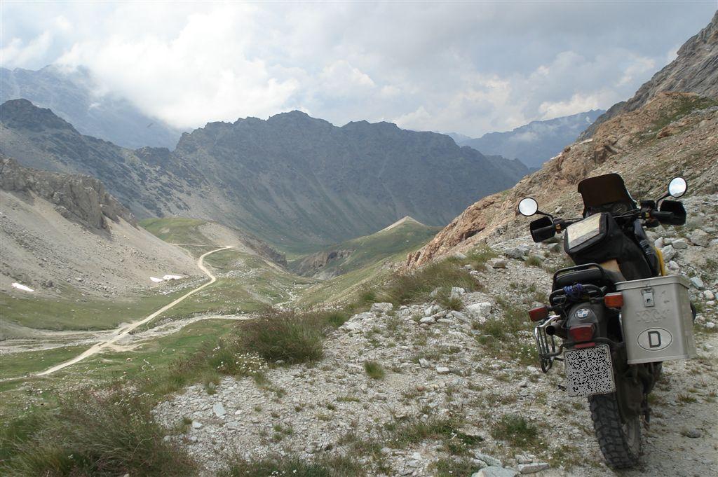 Zur Anfahrt mussten zwei auf der Strecke liegende Asphalt-Pässe "mitgenommen" werden. Col d’Izoard (2300m, Frankreich) und Col Agnel/Colle dell'Agnello (2700m, F/I), welche zügigst passiert wurden. Aufstieg über den asphaltierten Colle Sampeyre. Die Denzel-Beschreibung "grob geschottert" war ziemlich untertrieben, faustgroß geschottert trifft es eher.