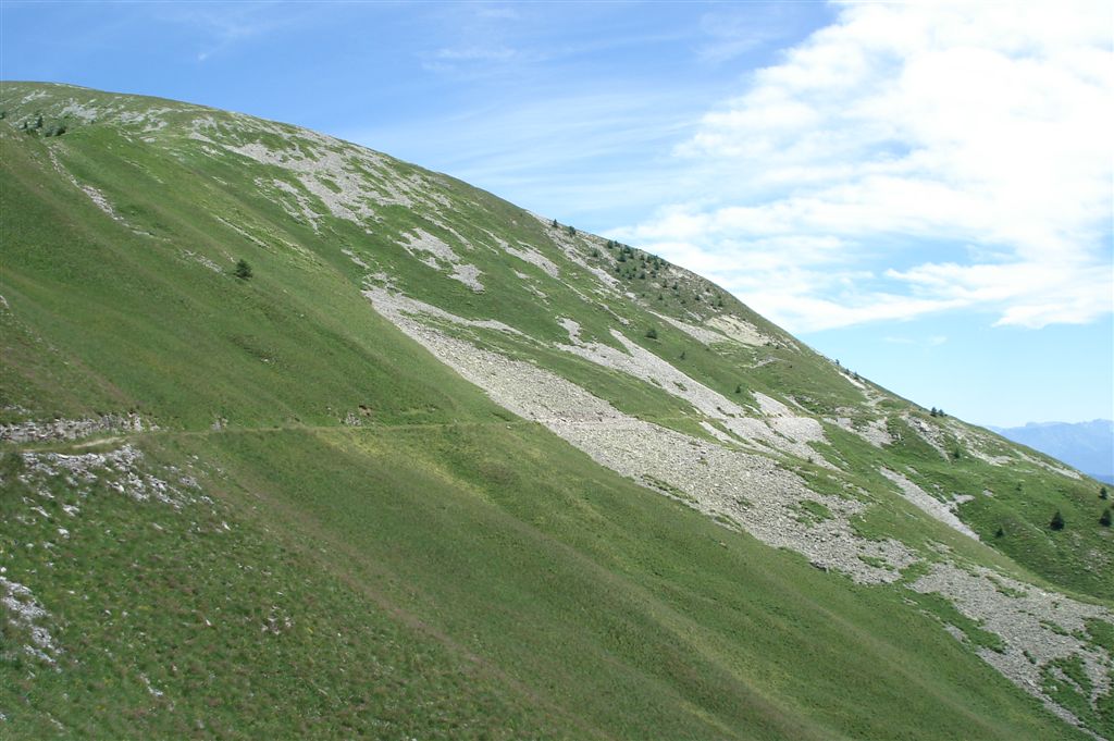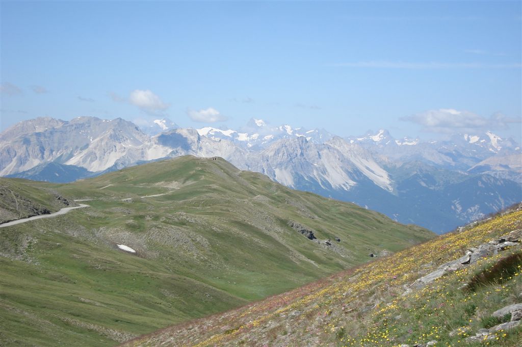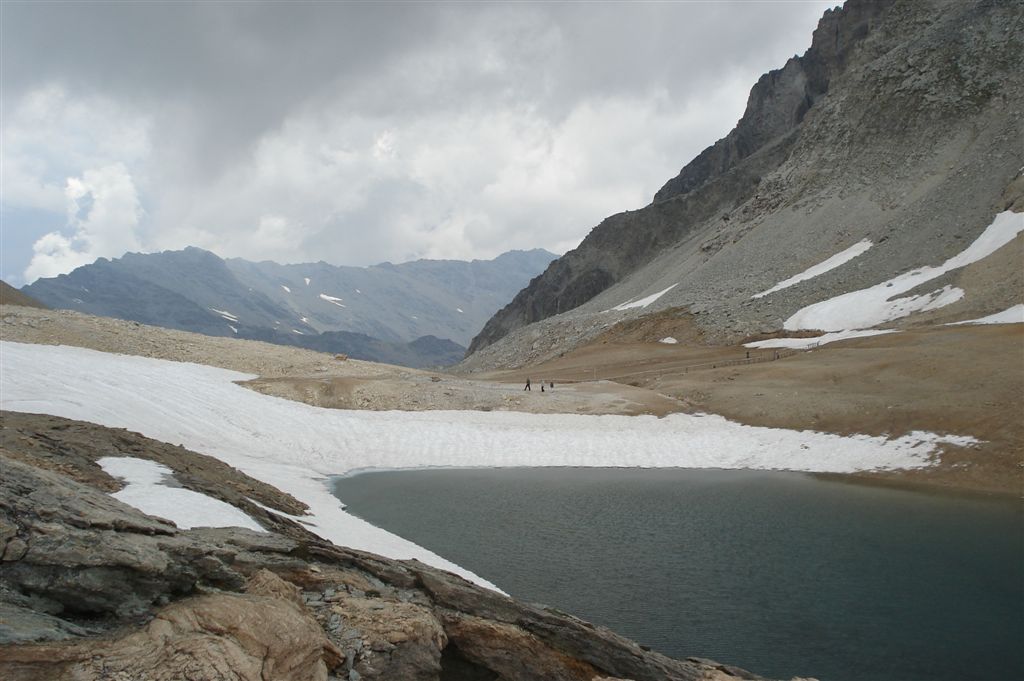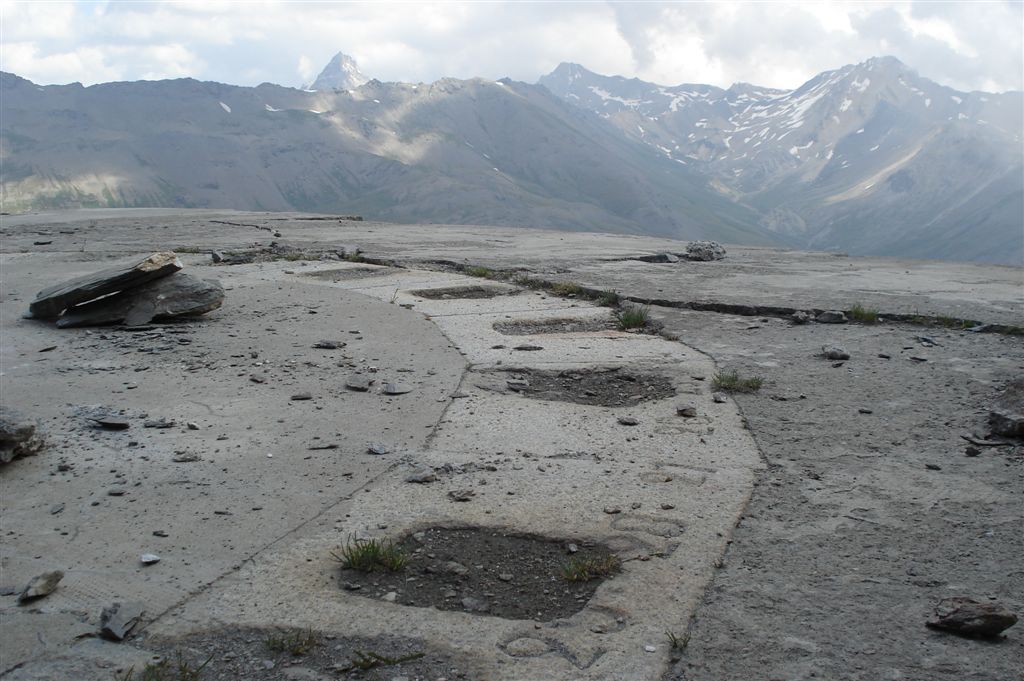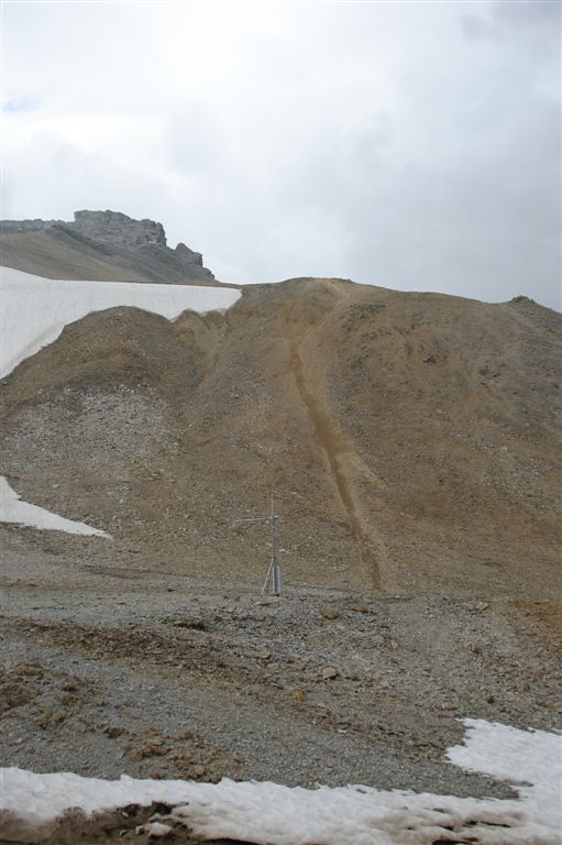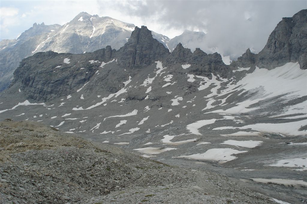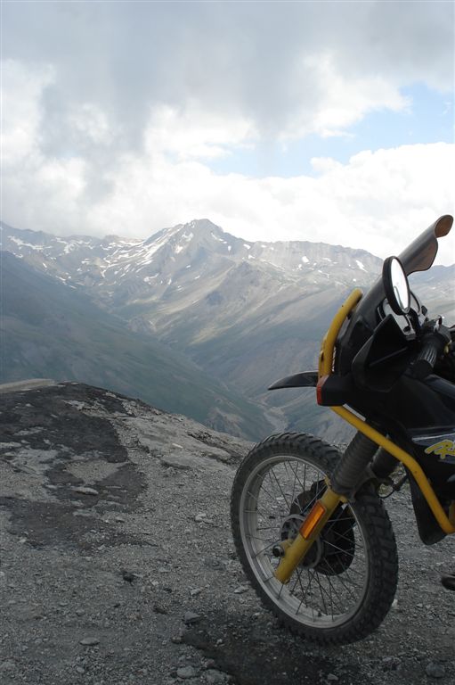 Der anschließende Fußmarsch zur Passhöhe wurde mit umfassenden Fernsichten belohnt. Bereits hier zeigten sich erstmals die berüchtigten Spuren "freien" Geländefahrens. Auch die Klimaveränderung war drastisch sichbar. Der in der Karte verzeichnete Glacier du Sommeillier existierte schlicht nicht mehr. An seiner Stelle gähnte eine kahle Felsrinne. Getroffene Enduristi bestätigen seine Existenz bis ca. 2005.
