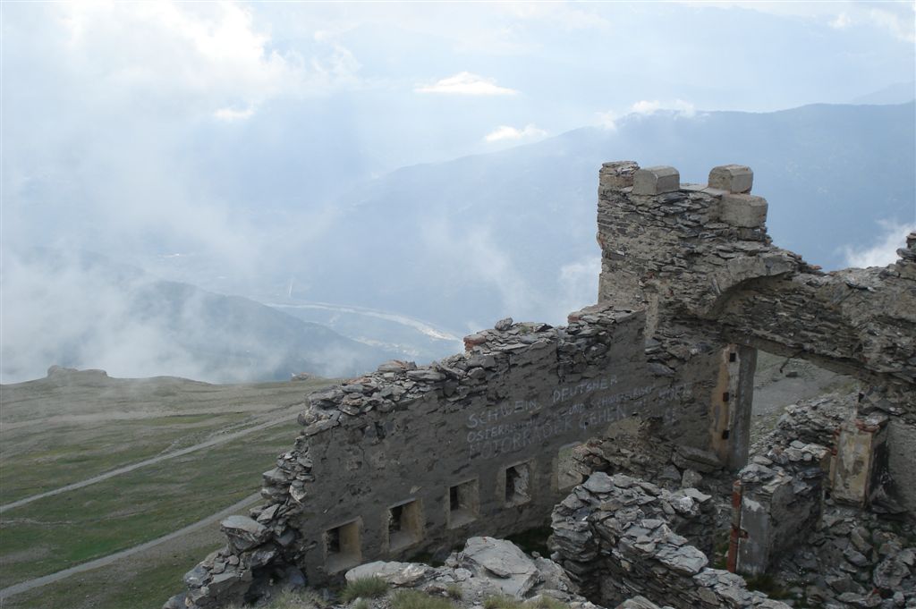 Auf dem Rückweg kurzer Abstecher zum Fort Pramand, von dem sich keine besonderen Ausblicke boten, dafür aber morbiden Charme verströmte. Auf dem Abstieg begegneten mir doch eine Menge Großstadt-Cowboys mit schicken, durchaus geeigneten 4x4, die sich aber vermutlich nicht alleine rauftrauten. Die Lenkerin des letzte 4x4 (BMW X5 !) bedankte sich für mein Warten und bemerkte nur "wir sind seit 3 Wochen hier, das ist jetzt die letzte Gruppe, die wir hochscheuchen". Mich deucht, Aufkleber nach Art eines Offroad-Magazins zierten ihr Wagenheck.