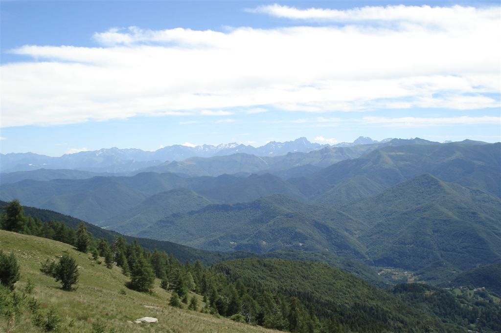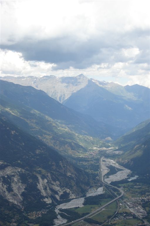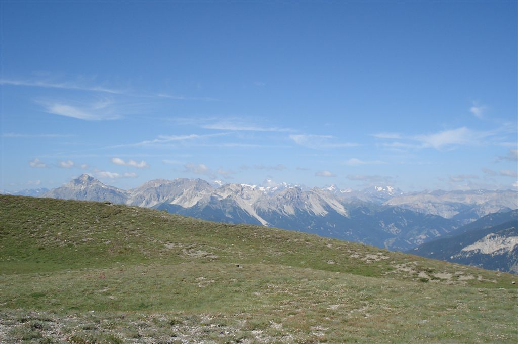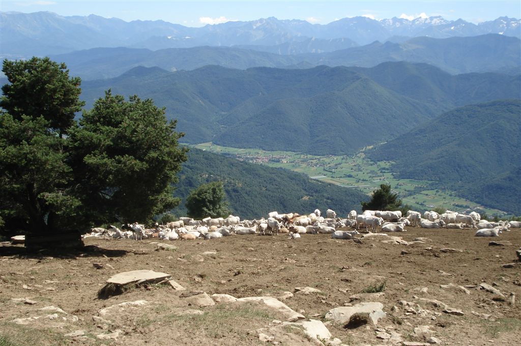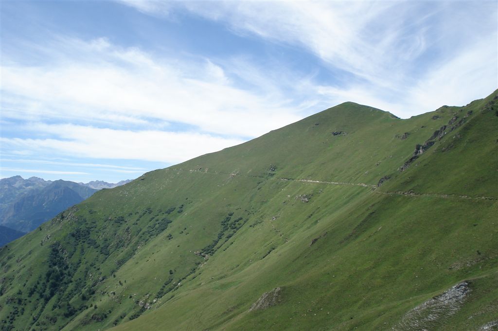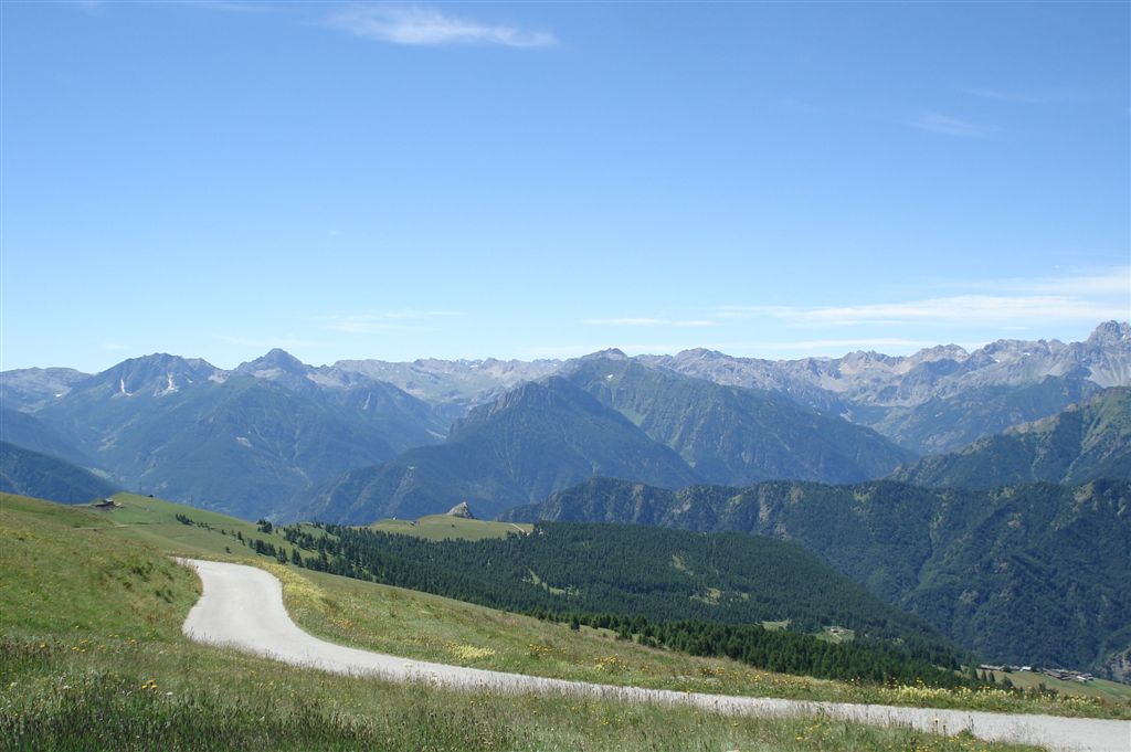 Insgesamt sehr schöne Aussichten auch in die italienische Tiefebene. Unterwegs führten drei Italiener, alle auf Großenduro unterwegs, den gekonnten Umgang mit denselben auf grobem Schotter vor. Es geht wohl doch einiges mehr bei entsprechendem Zug am Gas. Die intensive Nutzung der niederen alpinen Wiesen durch Beweidung hinterläßt fast noch größere Flurschäden als das Querfeldeinfahren, was natürlich nicht heißen soll, dass letzteres nicht so schlimm sei. Abstieg ins Tal über Asphalt und durch selbiges den gleichen Weg zurück zum Zeltplatz.